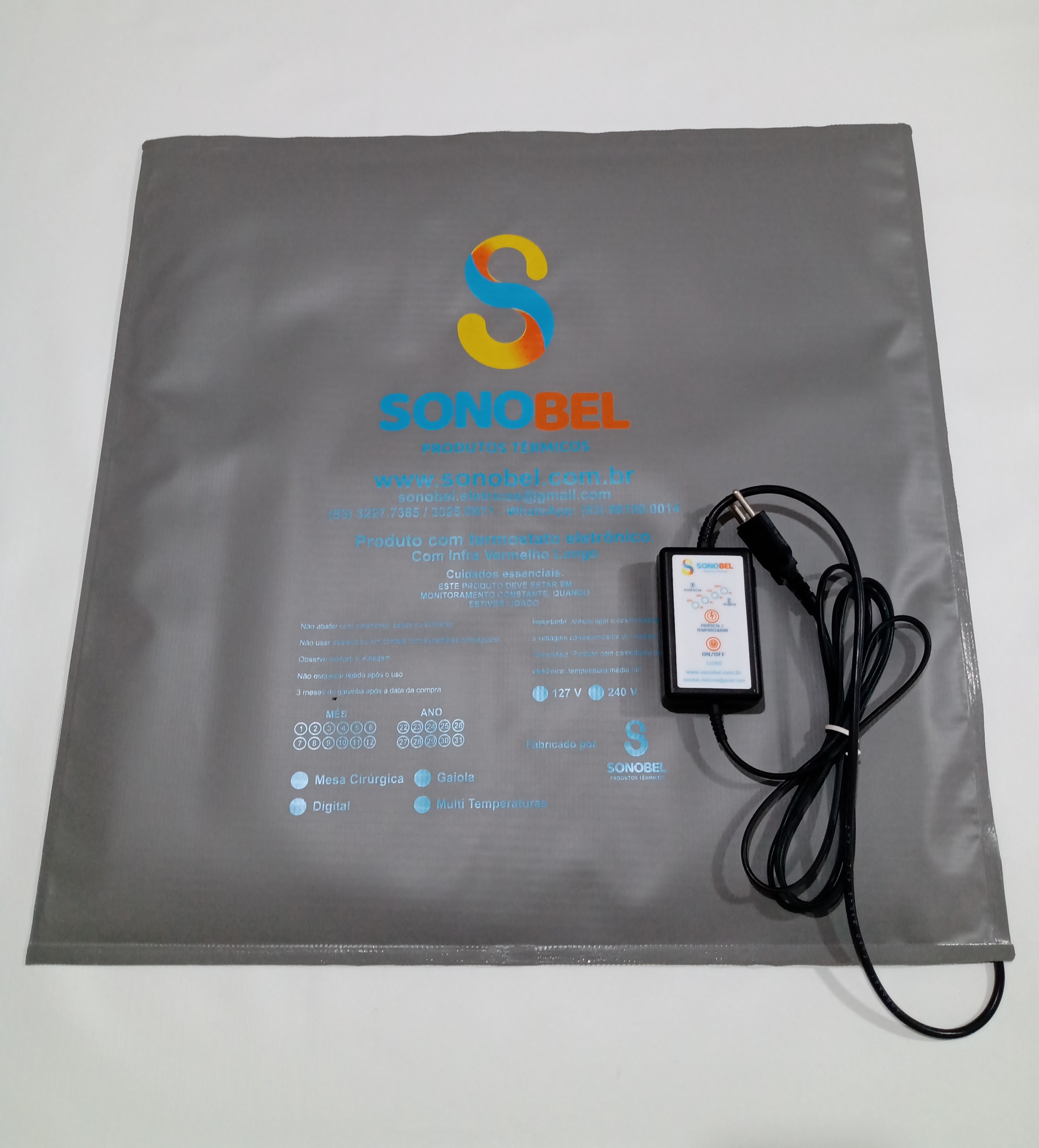 Descrição do produto : Colchonete Térmico p/ Gaiola e Ninheiras com infra vermelho de Lona controle 4 temperaturas e temporizador 110v ou 220 v.